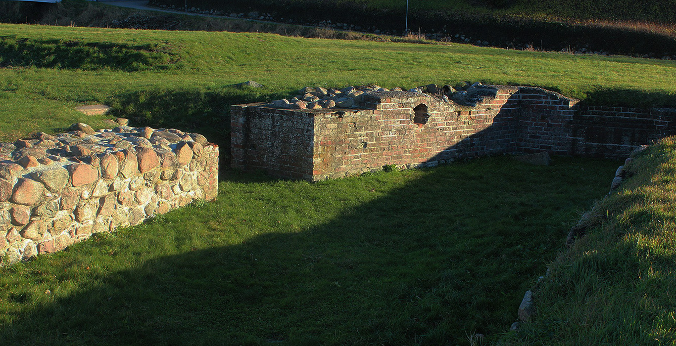 Ringmuren og hans bolig i Vestfløjen blev bygget af kampesten og ikke af tegl (munkesten), som bymuren og Østborgen senere blev.